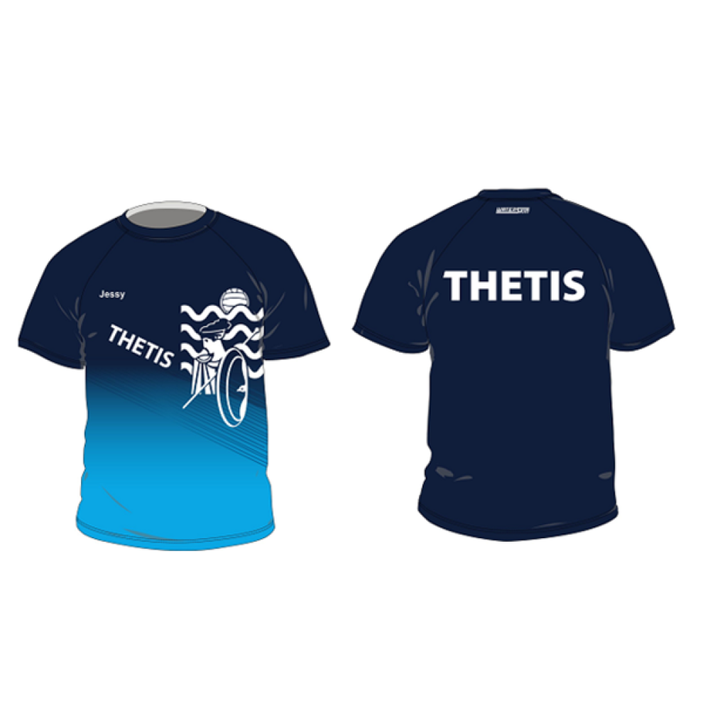 Het clubshirts is gemaakt van 100 % quick dry sport polyester, in de THETIS huisstijl. Eigen naam mogelijk